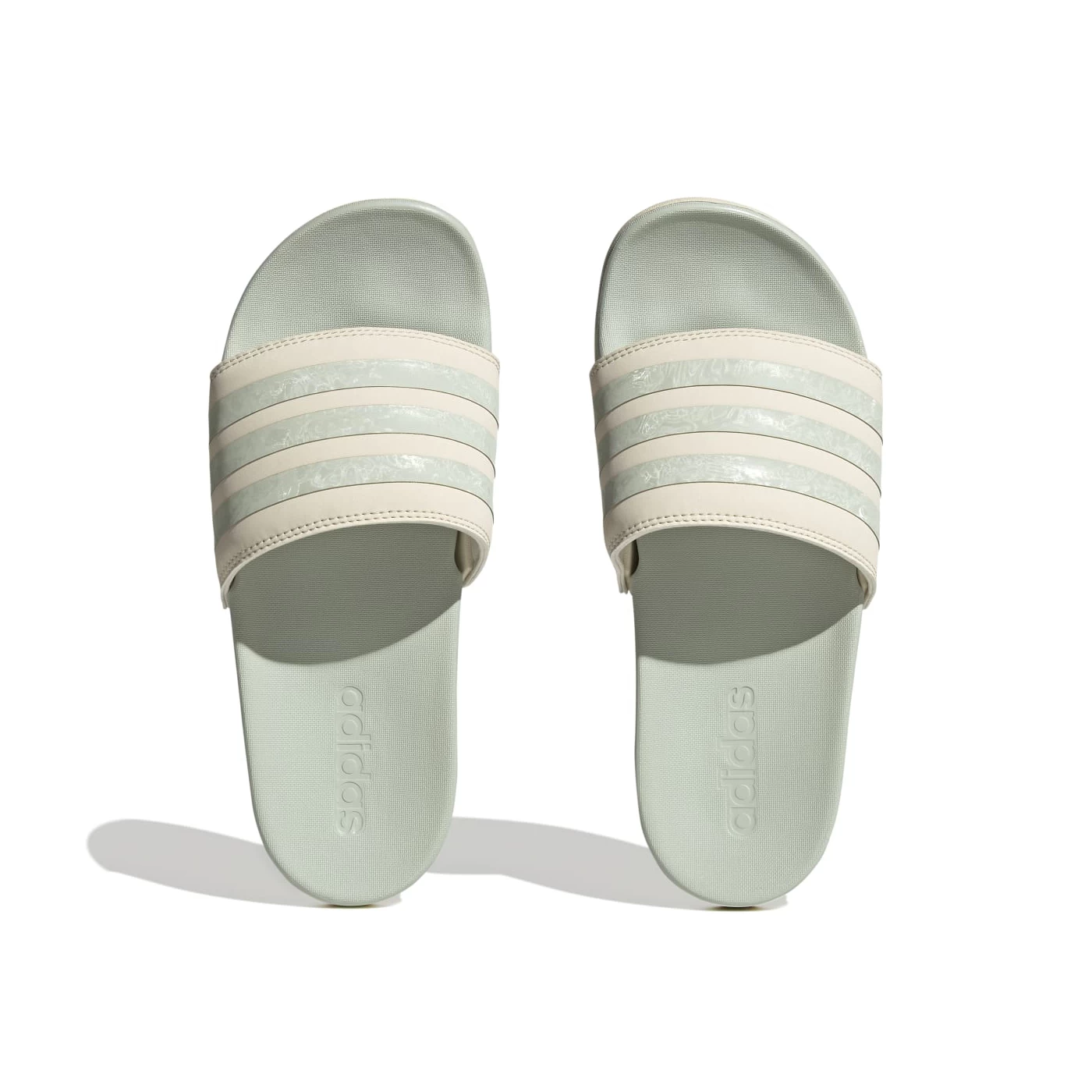 Die klassische adilette im modernen Makeover ist der adidas Adilette Comfort Badeschuh in Weiß/Hellgrün. Mit dieser Adilette lässt es sich bequem am Strand entspannen. Sie lässt sich auch gut in der Umkleidekabine tragen, ist aber nicht zum Duschen geeignet.
