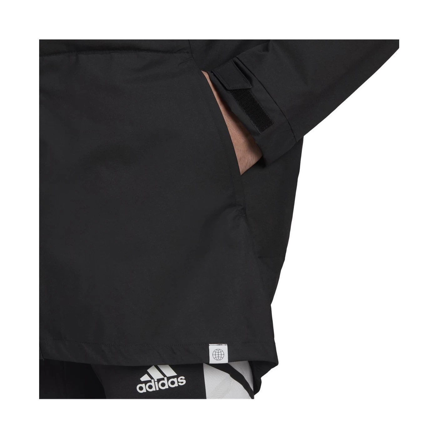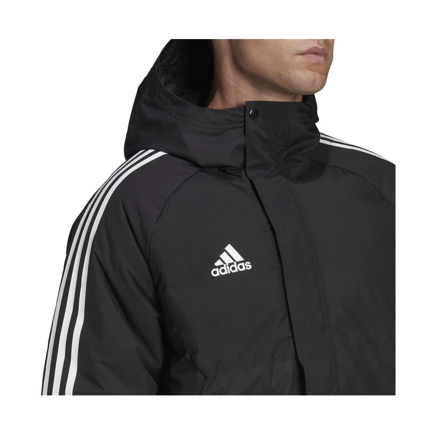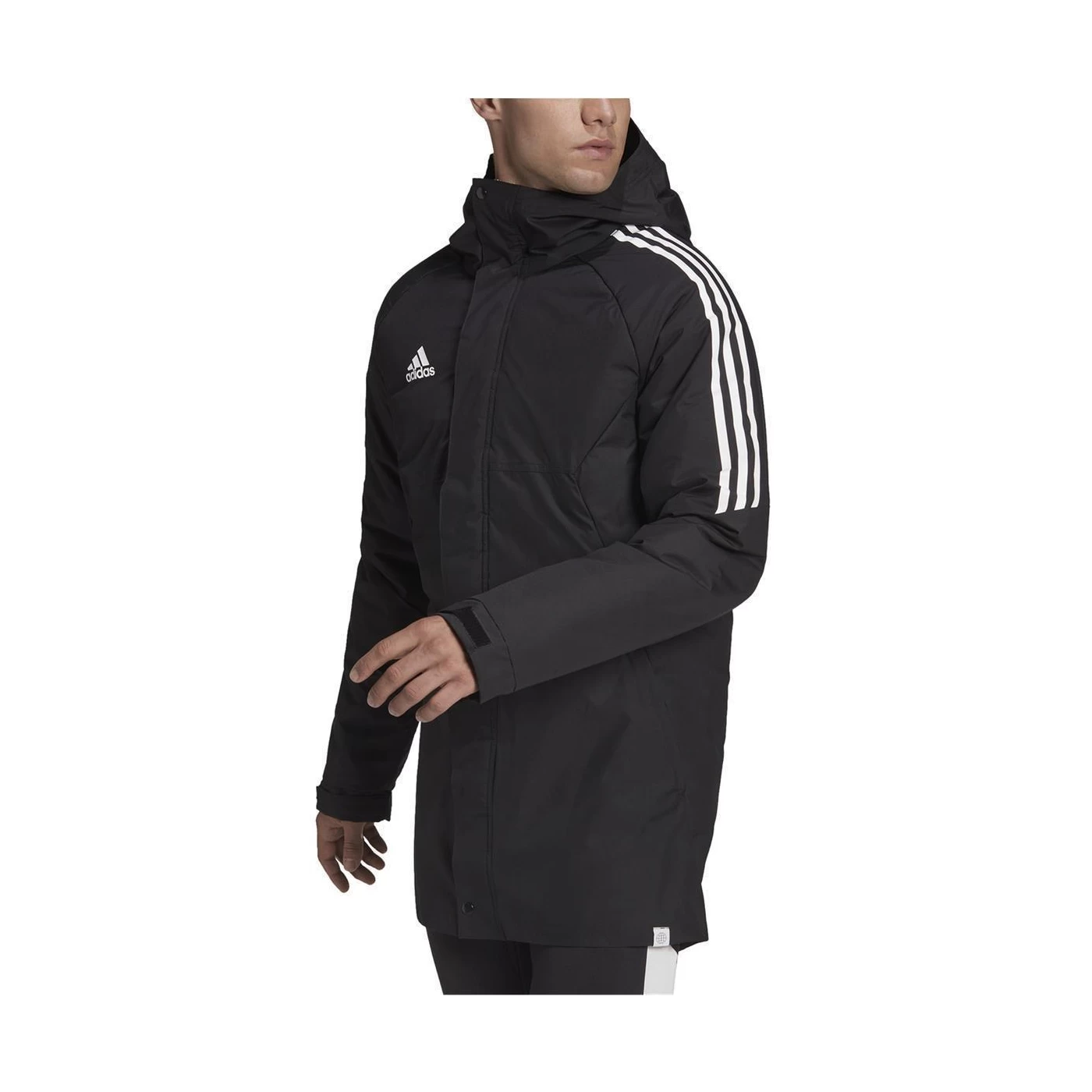 Für die wenig angenehmen Fußballtage bei Wind, Kälte, Regen oder Schnee bietet die schwarze adidas Condivo 22 Stadionjacke für Herren den nötigen Schutz. Durch die wärmende Wattierung, Kapuze und den verlängerten Saum lässt sich das Spiel vom Spielfeldrand verfolgen, ohne dabei zu frieren. Diese Stadionjacke wurde aus recyceltem Polyester hergestellt. Statte Dein Team für die Wintersaison mit den neuen Winterjacken der Condivo 22 Kollektion aus.