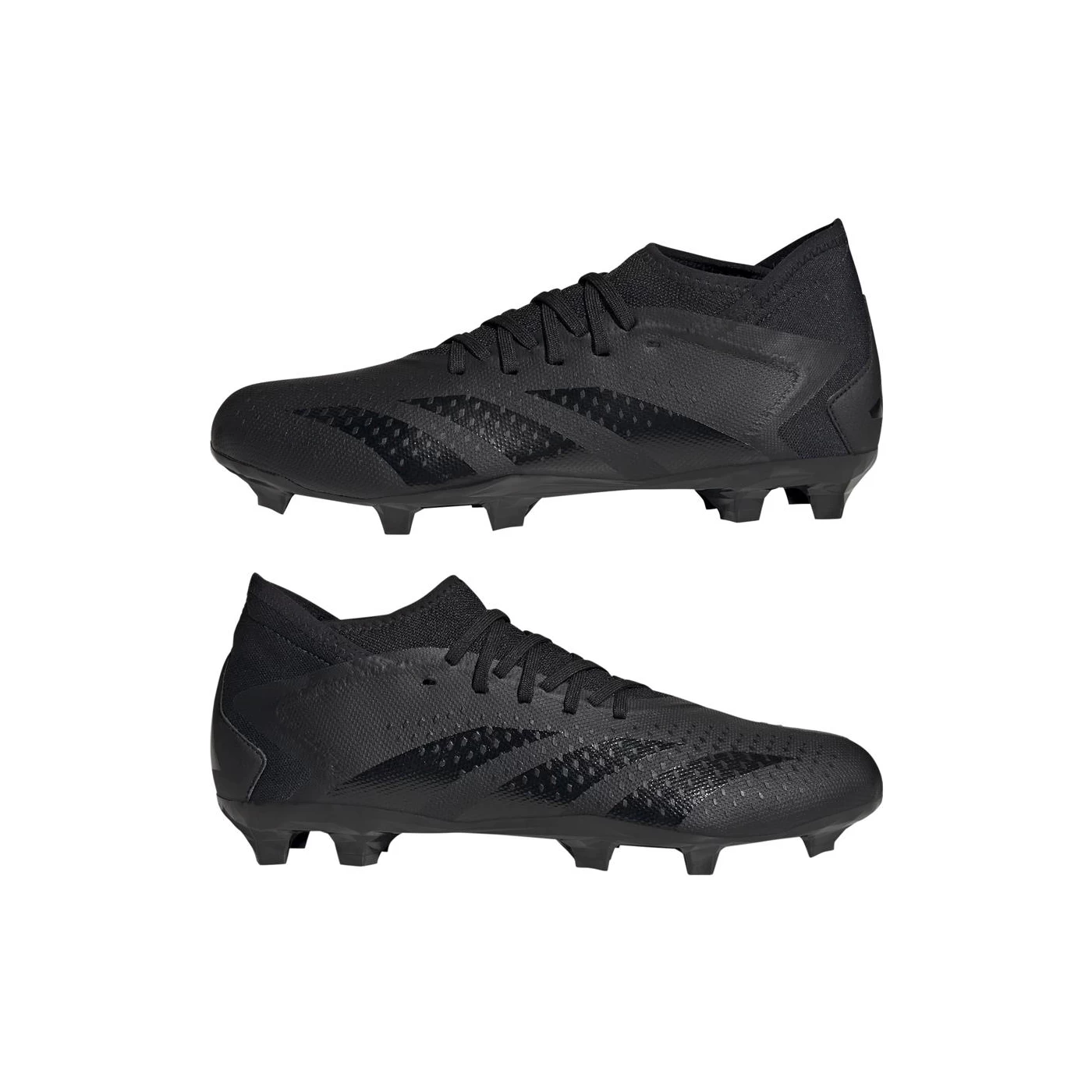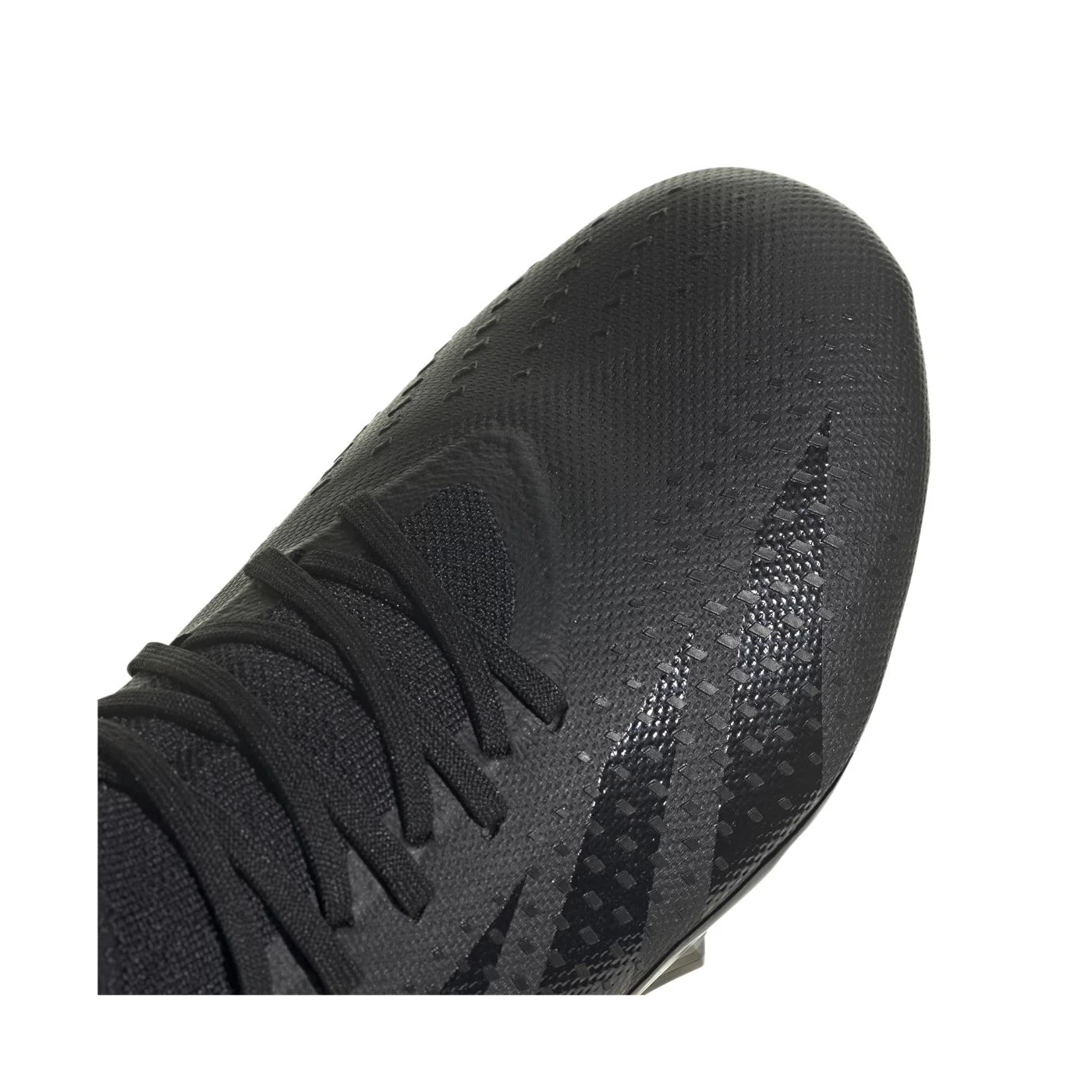 Die adidas Predator Accuracy.3 FG Fußballschuhe in Schwarz sind das Nachfolgemodell des Predator Edge. Sie haben einen Stealth-Look ohne bunte Details und die Logos sind nur durch die Reflexion sichtbar. Auf der Einlegesohle befindet sich der weiße Schriftzug Adidas Predator Accuracy.3.