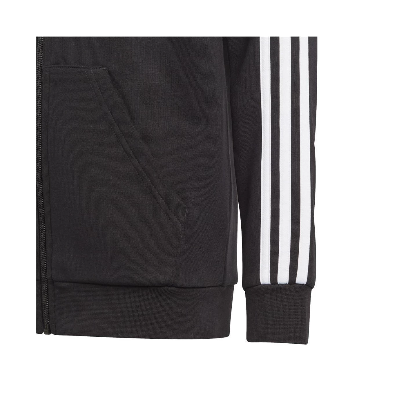 Ein unverzichtbares Basic, das immer auf dem Stuhl bereitliegen sollte. Diese schwarz-weiße adidas Kapuzenjacke für Kinder und Teens punktet mit ihrem klassischen Style und ultimativen Komfort. Das Fleece-Material hält dich angenehm warm, wenn die Temperaturen sinken. Und die 3-Streifen runden das Ganze ab.
