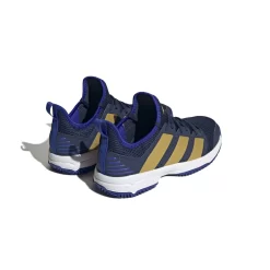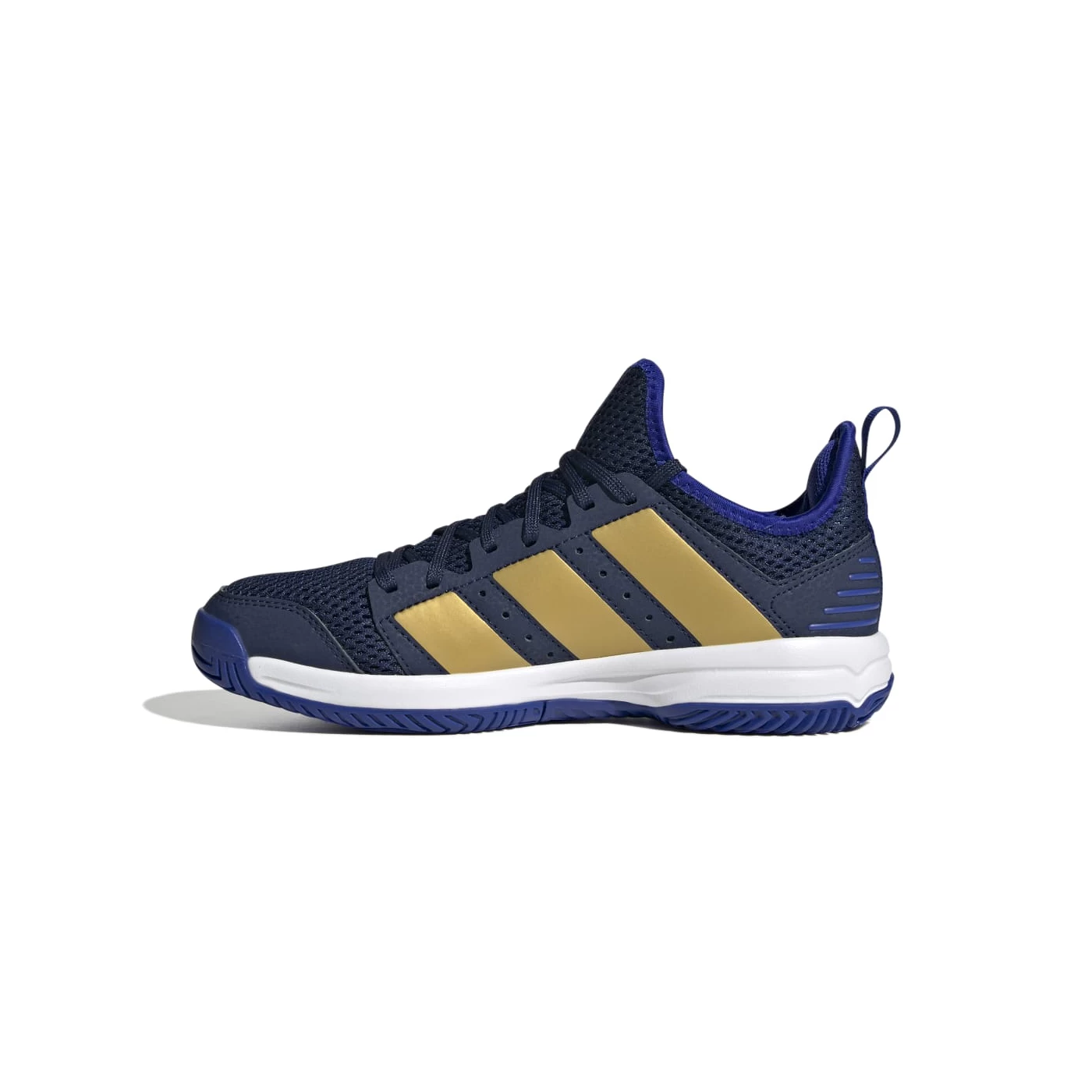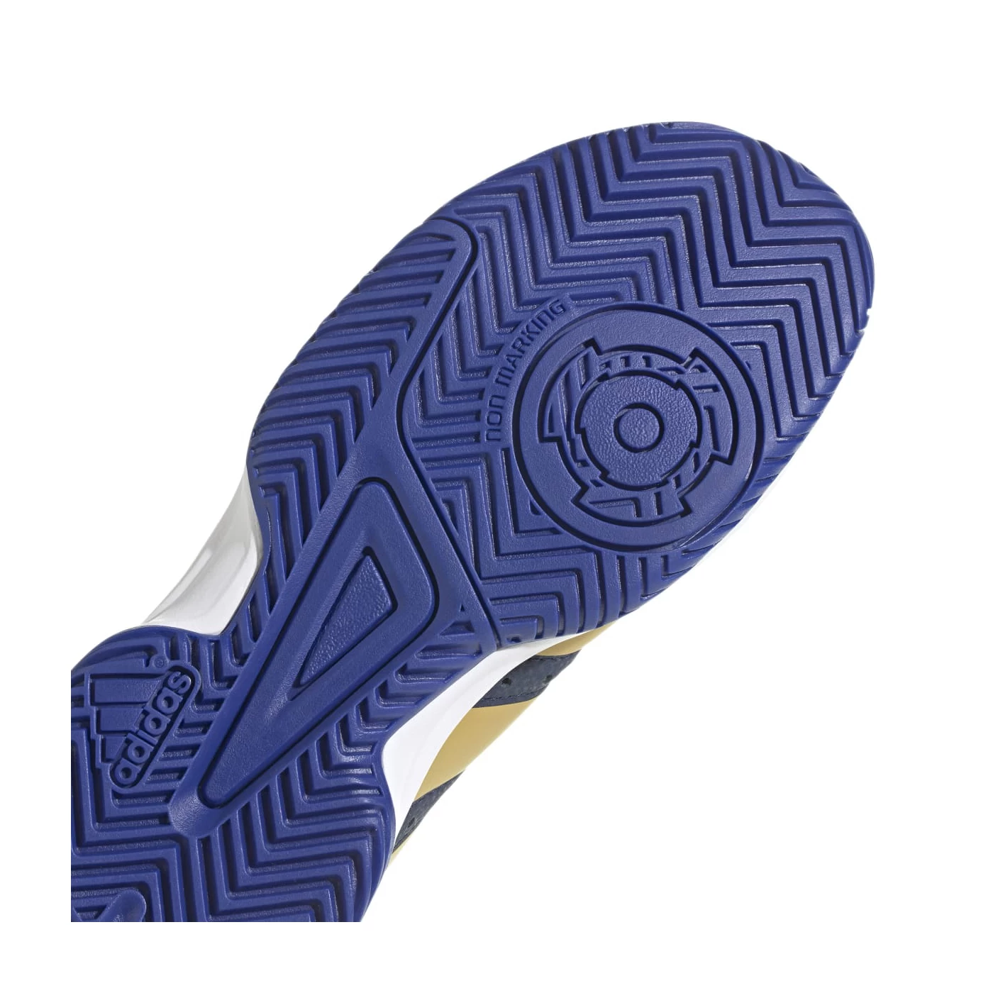 Mit dem adidas Stabil JR Inddorschuh für Kinder in Dunkelblau/Gold/Weiß hast du das Sagen in der Halle. Er kommt mit einem robusten Obermaterial, damit du bei Sportarten wie Handball, Volleyball oder Hallenhockey alles geben kannst. Die EVA-Zwischensohle sorgt bei jeder Aktivität für optimale Dämpfung. Die abriebfeste Gummiaußensohle rundet das Design ab.