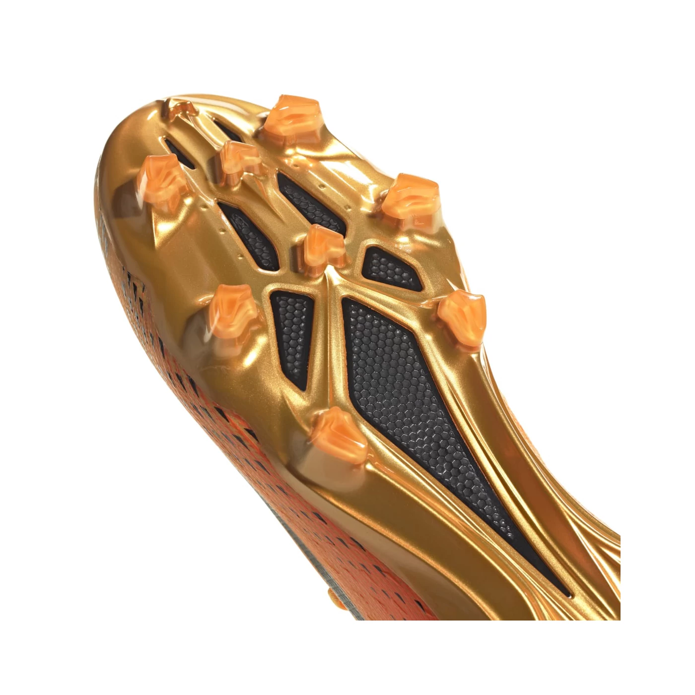 Neue Chancen, neue Räume, neue Dimensionen. Der adidas X Speedportal.1 FG Fußballschuh in Gold/Schwarz/Orange boostet deine Speed-Skills: Aktivier multidimensionale Geschwindigkeit. Der Schuh ist schön clean und superbequem. Die durchgehende Carbitex Carbonplatte in der Sohle überträgt deine Energie direkt in blitzschnelle Moves. Zusammen mit der Außensohle für feste Böden bist du nicht zu stoppen. Das passgenaue Speedskin Obermaterial inklusive anschmiegsamem Primeknit Schaft und leichten Carbonelementen im Fersenbereich sorgt für einen sicheren Sitz und Stabilität, wenn du deine Speed-Skills aktivierst.