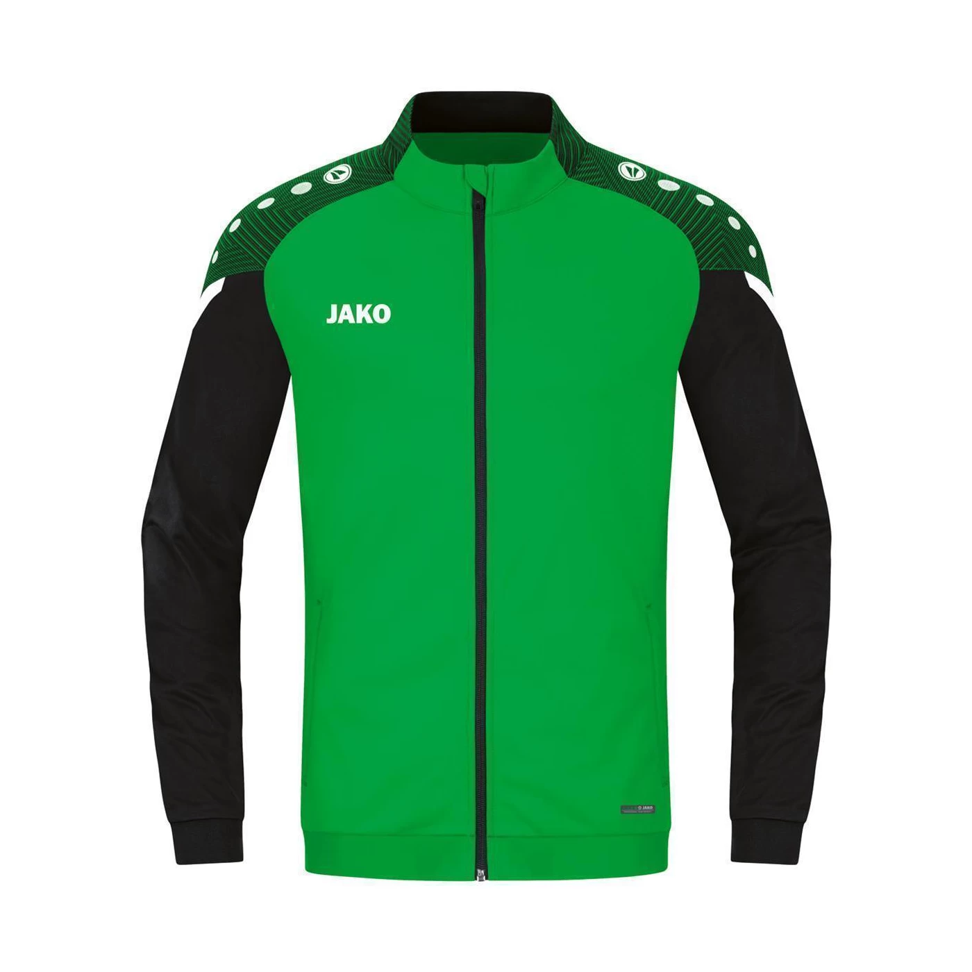 Mit der Jako Polyesterjacke Performance für Kinder in Grün/Schwarz bist du perfekt für zahlreiche Anlässe ausgestattet. Wie die gesamte Teamline Performance ist auch die Jako Polyesterjacke zu 100 % aus recyceltem Polyester hergestellt. Das Matt-Polyester-Tricot ist sowohl robust als auch pflegeleicht. Der Schultereinsatz mit grafischen Elementen aus Jacquard und die Kontrast-Tapes an den Schultern machen die Jacke zum absoluten Hingucker. Der Jacken- und Ärmelabschluss mit Ripp erhöht den Tragekomfort. Des Weiteren verfügt diese Polyesterjacke über Seitentaschen mit Reißverschluss.