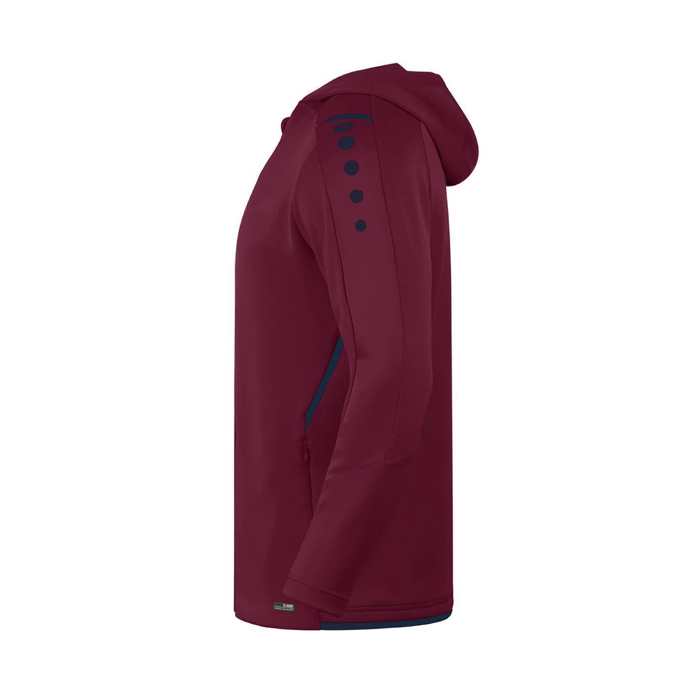 Mit einem innovativen Design und zahlreichen Details überzeugt die dunkelrote Jako Trainingsjacke Challenge mit Kapuze. Das Kontrast-Tape an der Schulter, das seitliche Kontrast-Tape, das Teamline-Label und der elastische Kontrast-Einsatz am Ärmelabschluss und am Saum sind typische Merkmale der Kollektion Challenge.