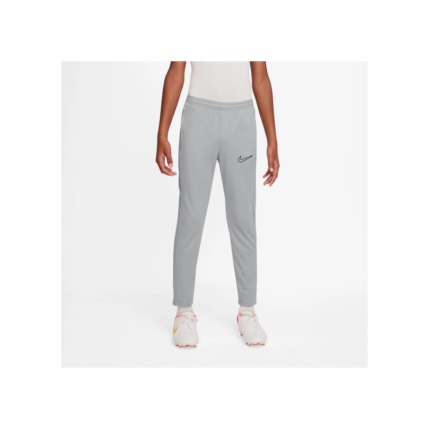 Die Nike Dri-FIT Academy 23 Trainingshose für Kinder in Silber/Schwarz bietet elastisches, schweißableitendes Material für Bewegungsfreiheit auf dem Platz. Die Reißverschlüsse im unteren Beinbereich ermöglichen ein schnelles An- und Ausziehen.