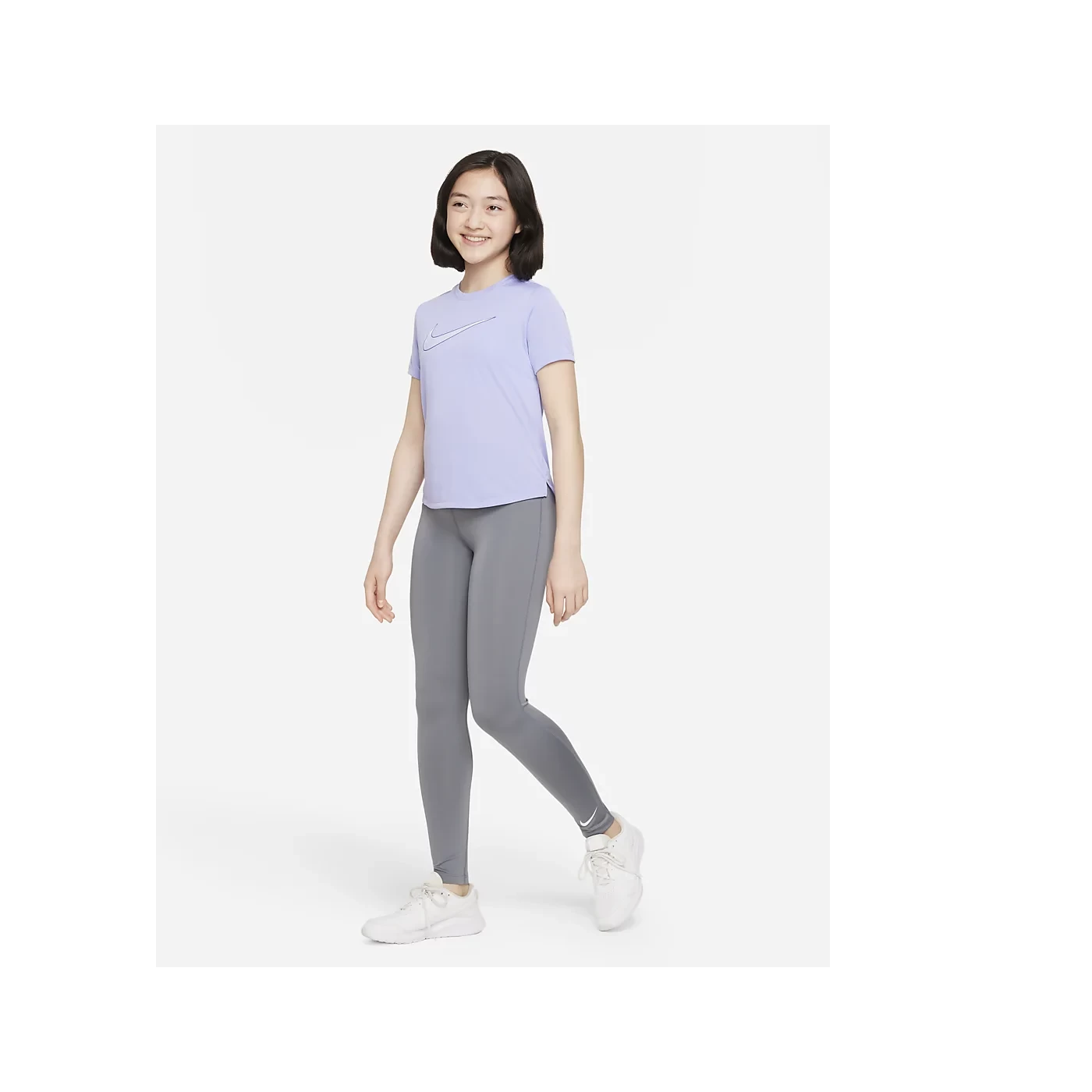 Brauchst du unser vielseitigstes Oberteil für verschiedene Sportarten und Aktivitäten? Ja, bitte. Das lilane Nike Dri-Fit One T-Shirt für Mädchen bietet beim Laufen, Springen und Spielen bequemen Tragekomfort. Es besteht aus weichem, leichtem Material mit schweißableitendem Support.