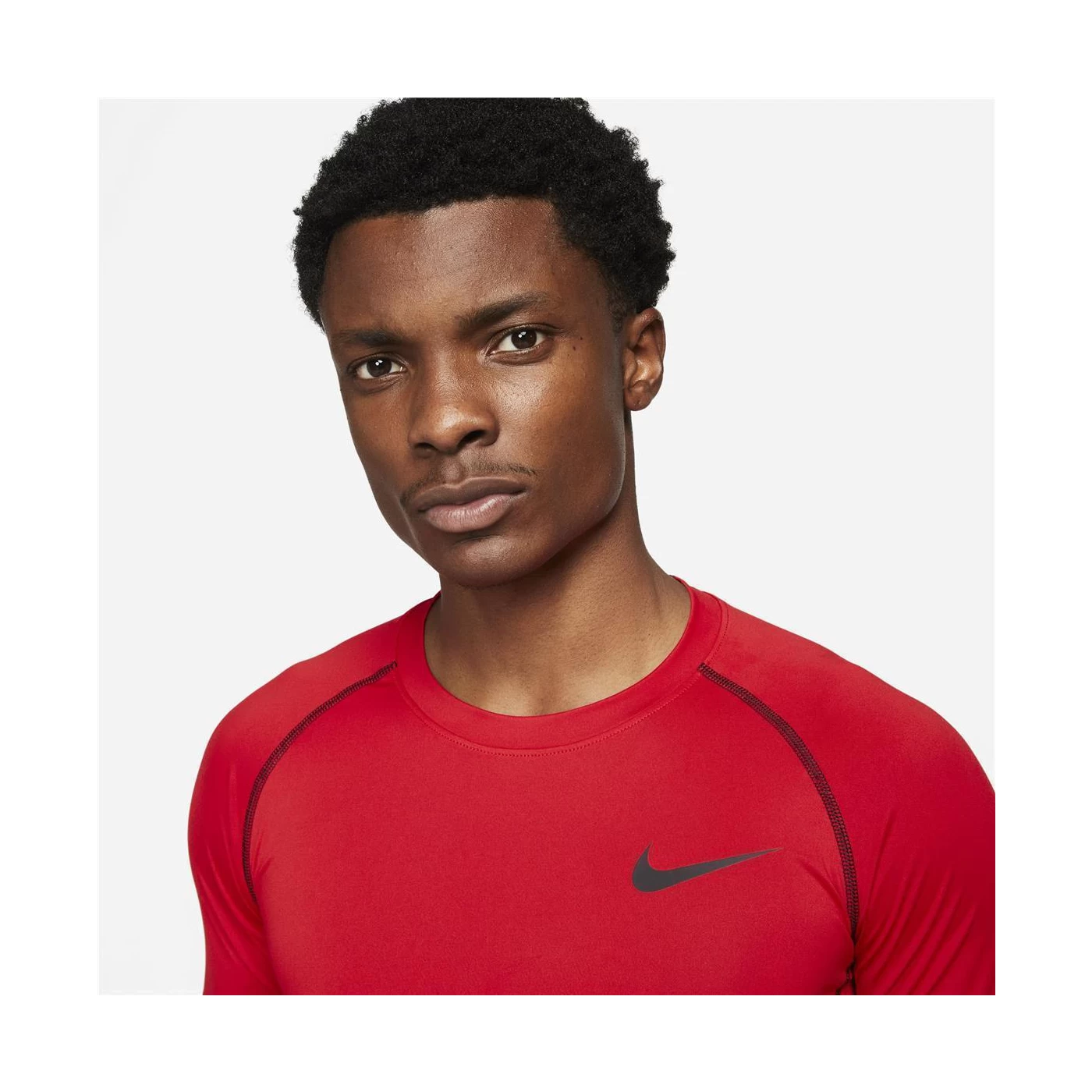 Das langärmelige Nike Pro Dri-FIT Funktionsshirt für Herren in Rot sorgt durch das leichte Material mit atmungsaktiven Einsätzen in Hitzezonen für trockenen Tragekomfort vom Warm-up bis zum Cool-down. Das elastische Material besteht zu mindestens 75 % aus recycelten Polyesterfasern und kann dank der engen Passform einfach unter anderen Oberteilen getragen werden.