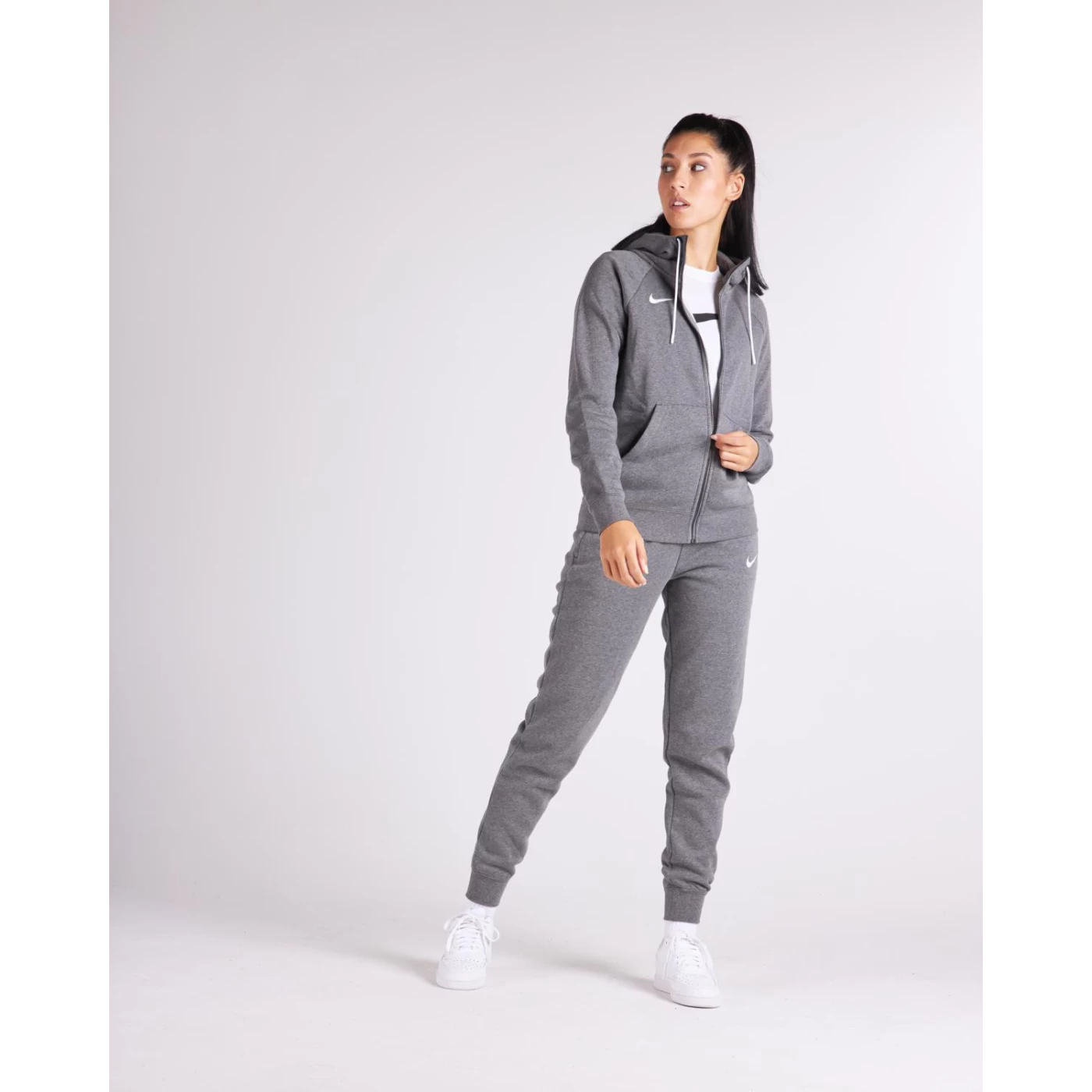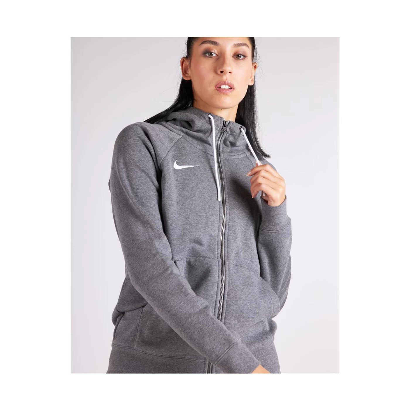 Ein weiches, warmes Tragegefühl bietet der Nike Park 20 Fullzip Hoodie für Damen in Dunkelgrau.