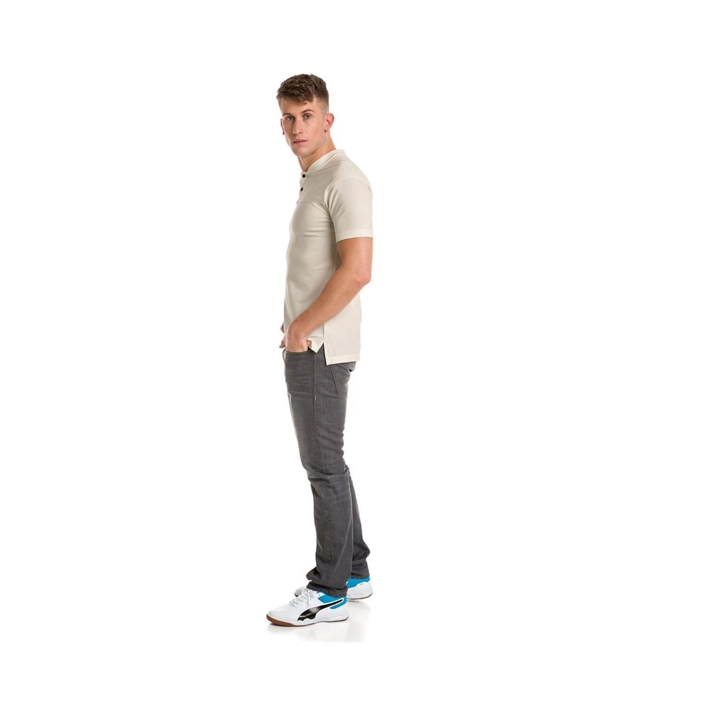 Weite Passform Zweiknopfleiste mit geripptem Stehkragen Material: 100% Baumwolle, Piqué (200g/m²)