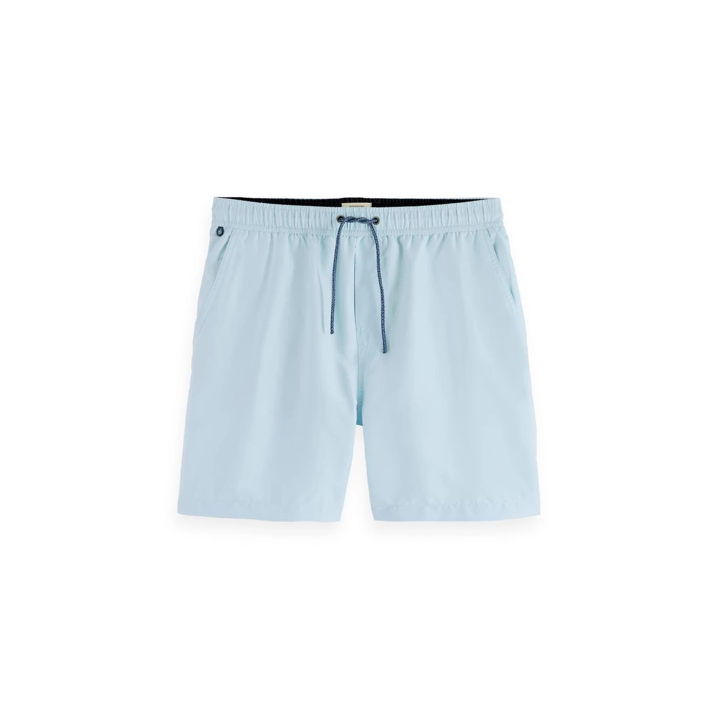 Die neuen Scotch & Soda Badeshorts mit mittellangem Bein, elastischem Bund und Tunnelzug lassen sich im Handumdrehen perfekt anpassen.
