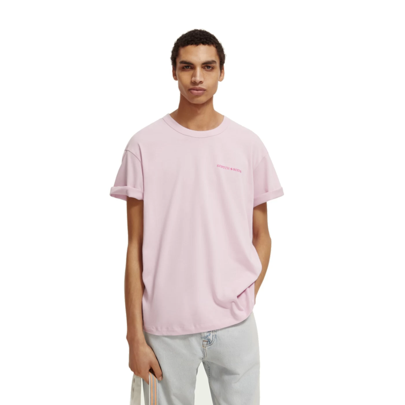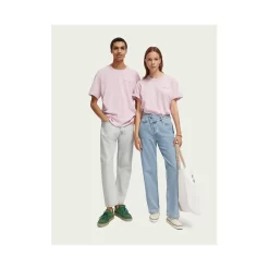 Stylisch und bequem, das klassische Scotch & Soda T-Shirt in Rosa ist eines der beliebtesten Kleidungsstücke. Mit einem Rundhalsausschnitt und einem modernen Logodetail auf der Brust ist dieses kurzärmlige T-Shirt perfekt für den Alltag.